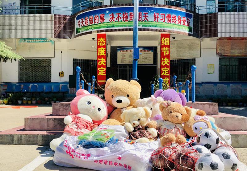 9点30分,捐赠仪式正式开始。首先,登封市君召乡大泘沱村民声希望小学教务处主任刘俊峰发表了讲话,他表示,非常感谢志愿者们克服艰苦的条件,为留守儿童义务助学,传播知识的火种,走访留守儿童家庭,传递温暖的力量,为孩子们送去关爱。深入基层,走近群众,是党的优良作风,志愿者们发扬了这一优良作风,体现了当代青年员工的责任和担当。刘主任向郑州市慈善总会和英国上市365连续两年的支教服务和爱心捐献表达了衷心的感谢。随后,英国上市365“环手爱”暑期社会实践服务队的指导老师付慧婕发言,她勉励孩子们好好学习,积极进取,早日走出乡村,有更大的作为,成为一个对社会、对国家有用的人。希望孩子们懂得感恩,长大以后回报社会,也回报父母的养育之恩。随后,进行了捐赠物品的交接。捐赠的物品有文具、书本、体育用品、衣物和玩偶等等。看到这么多自己喜欢的书籍和物品,孩子们脸上溢满了幸福的笑容。