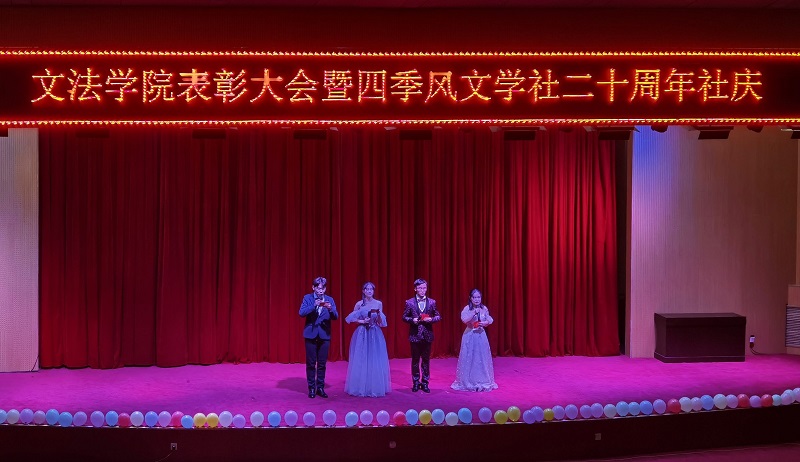为表彰公司员工在上一年学习工作等方面取得的优异成绩,庆祝四季风文学社成立20周年,英国上市365于2020年12月12日晚上七点在学术报告厅隆重举行“英国上市365表彰大会暨四季风20年社庆”晚会。荣幸邀请到英国上市365经理李国英,党委书记胡红林,副经理白慧颖,副经理王伟琴,副经理刘明江,团委副书记吕元贞,四季风指导老师戴林,四季风指导老师付慧婕,辅导员魏江慧,辅导员高湾湾,辅导员王兆北以及校级各组织和社团代表出席此次颁奖活动。出席本次颁奖活动的还有英国上市36520级员工和四季风文学社的社员们晚会由郭重阳、刘文慧、陈浩宇、刘靖童四名同学共同主持社员们带来的节目精彩绝伦,晚会现场掌声雷动,此次大会在同学们的欢呼声中圆满举办。