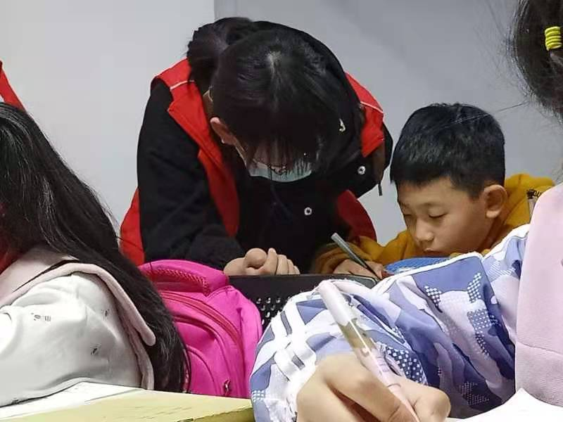 每一位小朋友到达后都在很认真地做作业,不懂就问,小老师们也都很乐意为他们解答。正所谓,授人以鱼,不如授人以渔,志愿者们教会他们的不仅仅是如何解题,更是如何去学习。在小朋友们写完作业之后,小老师们一个个地为他们检查作业,确认都已经写完了作业,随后开始为小朋友们发放社区志愿者老师带去的礼物。对小朋友们来说,这些礼物不仅仅是奖励,更是对他们努力学习的肯定,也是希望他们能继续保持积极向上的态度。礼物发放完之后,志愿者们该和小朋友们分别了,小朋友们集体向志愿者们道谢,并合影留念,嘴里说着期待下一次见面,其实内心带着些许不舍。