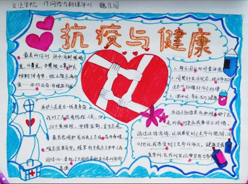 为提高疫情防控期间老员工心理健康工作,增强老员工的自我保护和防护意识,保持良好的心理健康状态,公司举办了抗击疫情手抄报活动,活动时间为6月6日至10日,全院同学积极参与。