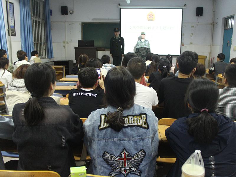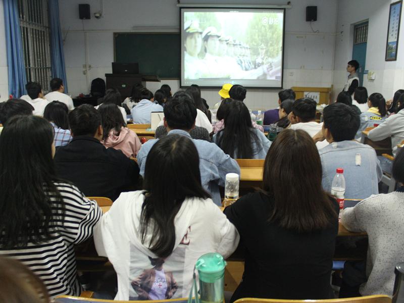 王希老师在讲话中指出,参军报国既是每个公民的神圣职责,也是公民的光荣义务。她还给大家讲解了老员工应征入伍政策,希望大家响应国家号召,积极参加兵役登记,踊跃报名参军。退伍复学的梁家林和张寅鹏两位同学与大家分享了部队的生活和当兵的感受,他们指出,部队生活有苦有累,同时还肩负着保家卫国的重要使命,是人生中最值得回味的宝贵经历。最后,放映2019年征兵宣传片,令正值青春的同学们热血沸腾。