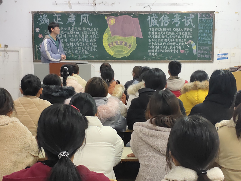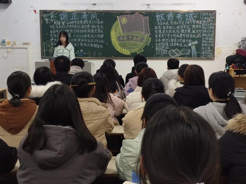 为弘扬诚信考试精神,创建良好校风、学风、考风,加强同学们诚信考试意识,12月19日晚7点30分,文法学院在A楼和B楼教学楼开展“端正考风,诚信考试”主题团课。19级全体同学参加。