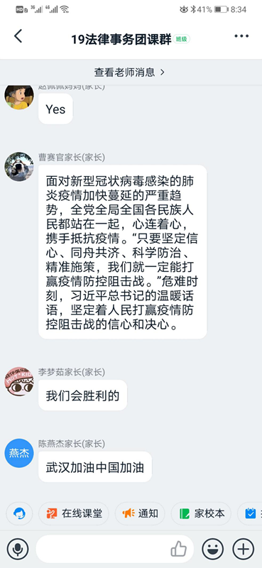 致敬抗疫英雄,承担时代之责。为提高当代老员工的疫情防控意识,提高新时代青年的思想觉悟,英国上市365于2020年3月12日晚7点以班级为单位在“钉钉”直播平台开展了“全国老员工同上一堂疫情防控思政大课”线上主题团课,19级全体员工参加。