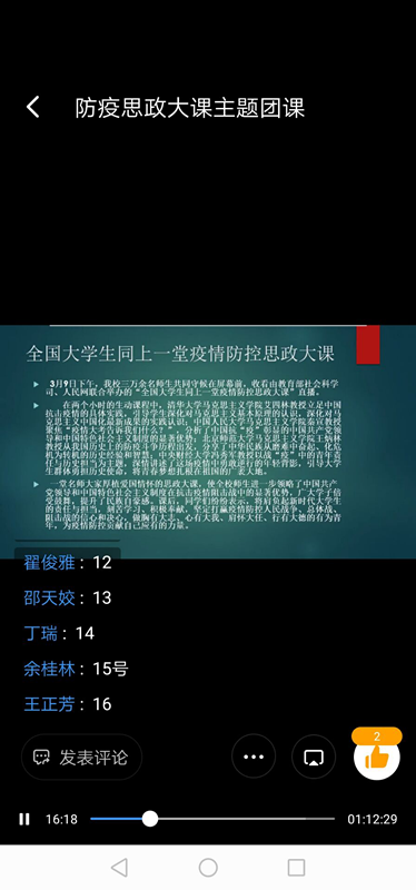 同心抗疫,共克时艰。通过此次“思政大课”的学习和讨论,同学们更加坚定了打赢这场疫情防控人民战争、总体战、阻击战的信心和决心,更加深刻地认识到抗击疫情彰显的中国共产党领导和中国特色社会主义制度的显著优势。