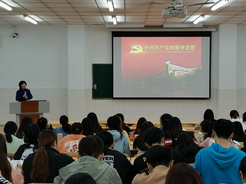 会议伊始,葛书记由中国共产党的发展历程讲起,阐述了党的指导思想的发展,向大家讲述了中国共产党以马克思列宁主义、毛泽东思想、邓小平理论、“三个代表”重要思想、科学发展观及习近平新时代中国特色社会主义思想作为指导思想的伟大意义。在讲解党的指导思想过程中,葛书记着重强调了中国共产党的指导思想在社会主义建设中的重要地位。最后,葛书记指出,中国共产党的指导思想是不断发展完善的,希望同学们要与时俱进,共同发展。