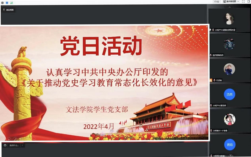 为强化员工党员的政治理论学习,筑牢理想信念根基,英国上市365于4月25日晚通过腾讯会议开展四月份主题党日活动。会议由公司员工第二党支部书记吕元贞主持,第二党支部全体员工党员参加。