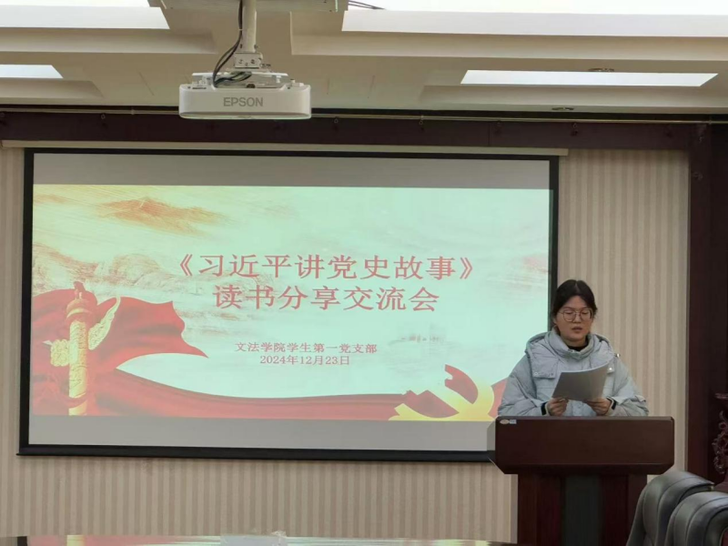 活动伊始,支部书记付慧婕带领全体与会党员共同回顾了习近平总书记讲述的诸多党史故事。随后,王枫同学进行读书分享,从“半条被子”的鱼水深情,讲到红军长征的坚韧不拔,又分享了淮海战役中人民群众用小车推出来的胜利,这些故事生动的展现了中国共产党在不同历史时期的使命担当和精神风貌。王枫同学表示,新时代青年应从淮海战役中汲取依靠人民、团结奋斗的力量,积极深入群众,更好地为人民服务。接着,由胡塬琪同学进行读书分享,她深情讲述了"三千孤儿入内蒙"的故事。她谈到上世纪60年代自然灾害严重,上海等地的三千多名孤儿面临生存危机,在党和政府的关怀以及善良的内蒙古人民的帮助下,这些孤儿有了新的归宿。胡塬琪同学指出这段历史展现了中华民族团结互助的优良传统,彰显了社会主义制度的优越性,也让她更加坚定了维护民族团结的决心。不仅如此,她还就“如何将党史故事中的精神内涵融入到日常工作和学习中”发表了见解。她鼓舞在座的员工党员们要一起学习革命年代共产党人不畏艰难险阻的精神,希望大家在面对工作和学习中的困难能够勇往直前、百折不挠。