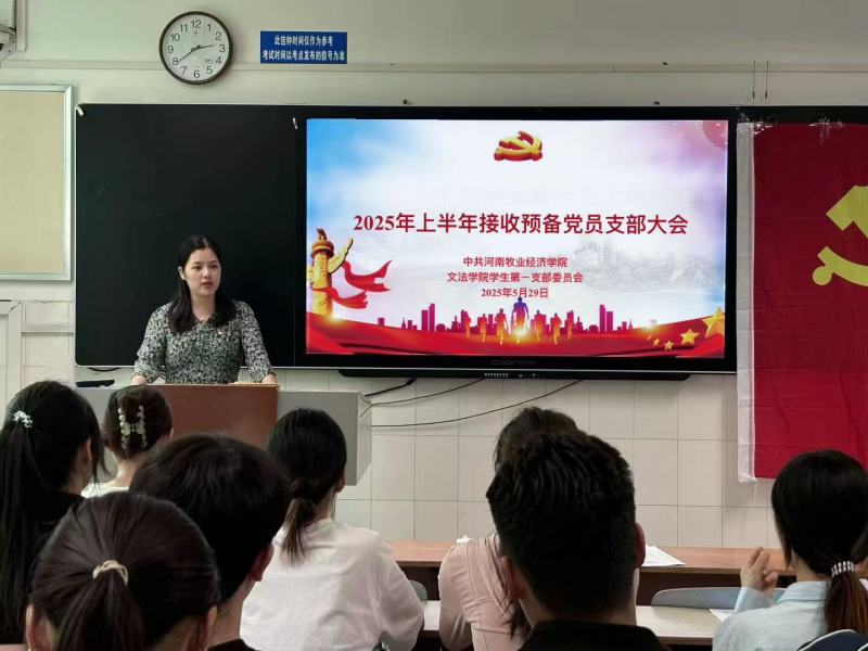 为进一步壮大党员队伍,增强党组织活力,公司员工第一党支部于2025年5月29日下午2点在教学楼B207召开2025年上半年接收预备党员支部大会。本次会议由员工第一党支部书记付慧婕主持,公司党委书记胡红林、支部委员委员高干、叶新源及一支部全体员工党员参会。