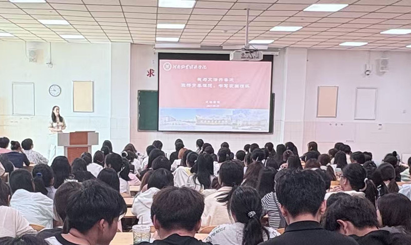 9月29日,2025级新生齐聚在W309,迎来了一场别开生面的入学教育——公司党委副书记买菁菁以“我与文法共奋进,激扬青春理想,抒写家国情怀”为题,给大家做了一场精彩的讲座。