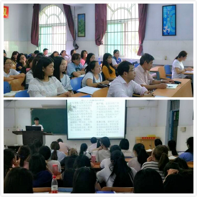 民法是民事领域的基础性、综合性法律,规范人身关系和财产关系,涉及社会和经济生活的方方面面,被誉为人生指南、社会生活的百科全书。为进一步普及新颁布的《民法总则》的相关知识,总结交流民法学习经验,6月7日下午,文法系在A214举办“民法精神入我心”PPT展示活动。文法系党总支副书记王本聚、法律教研室主任杨志民、16法律事务班全体同学参与了此次活动。