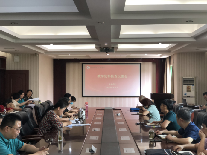 首先,李经理介绍了教学资料检查的方案、过程、重点与意义。接着,王伟琴副经理就课程教学大纲、教授计划、教案、讲义、试卷命题、试卷批改、试卷整理归档以及教研室教研活动资料等的检查情况做了详细的反馈。之后,李经理强调了学习评估文件的重要性,从教学原理的角度深入剖析了课程教学大纲、教授计划、教案、讲义、命题之间的内在逻辑关系,并进一步强调了试卷保密、阅卷程序与细节的规范等事项。最后,胡红林书记要求全院教师高度重视教学资料检查反馈意见,并认真落实整改,确保问题整改到位。