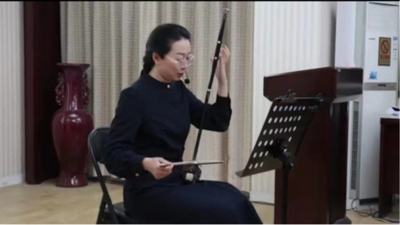最后孙老师为大家演奏了一首二胡曲子,在悠扬的琴声中结束了本次讲座,同学们与孙老师依依惜别,并热情拍照留念。杨昀老师代表同学们再次向孙老师表示感谢,鼓励同学们热爱并学习我国传统音乐,了解更多的中华优秀传统文化,增强个人的修养,涵养个人品格。