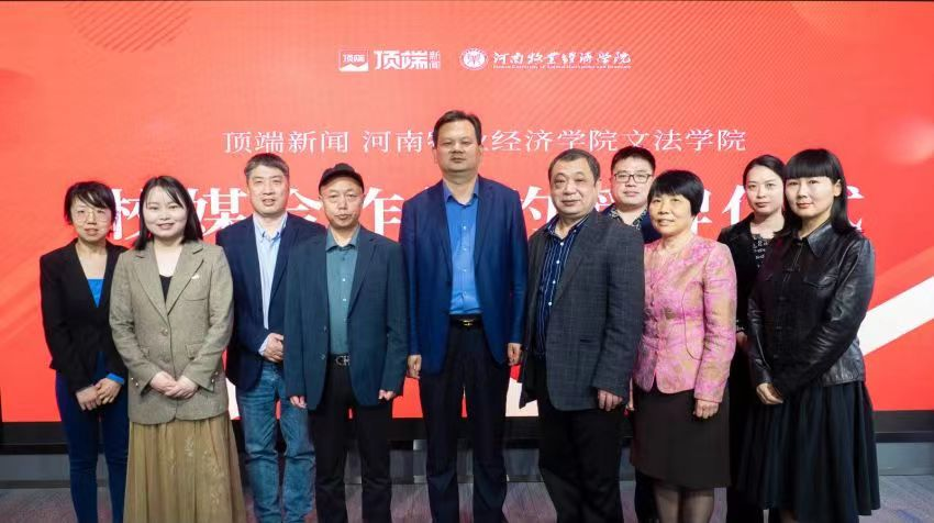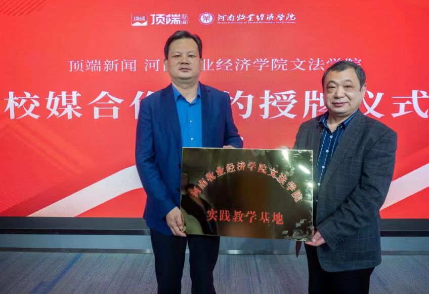 为进一步提升应用型新媒体人才培养创新平台建设水平,持续深化产教融合,精准对接产业需求,4月12日公司党委书记胡红林,经理李国英、副经理魏景霞、网络与新媒体教研室主任苏颜军、副主任张培一行赴顶端传媒科技(河南)有限公司进行交流座谈,双方举行了校外实践教学基地签约和授牌仪式。河南日报报业集团有限责任公司副总经理、顶端传媒科技(河南)有限公司董事长关国锋、聚合分发中心总监王站营、聚合分发中心副总监、100°C工厂厂长陈松、聚合分发中心副总监、分发传播部主任杨化涛、音视频工厂视频制作部主任晋远、视频频道主编兼首席运营官秦园园、聚合分发中心首席编辑邱瑾、1号工厂记者王丹参加了此次座谈及签约授牌仪式。