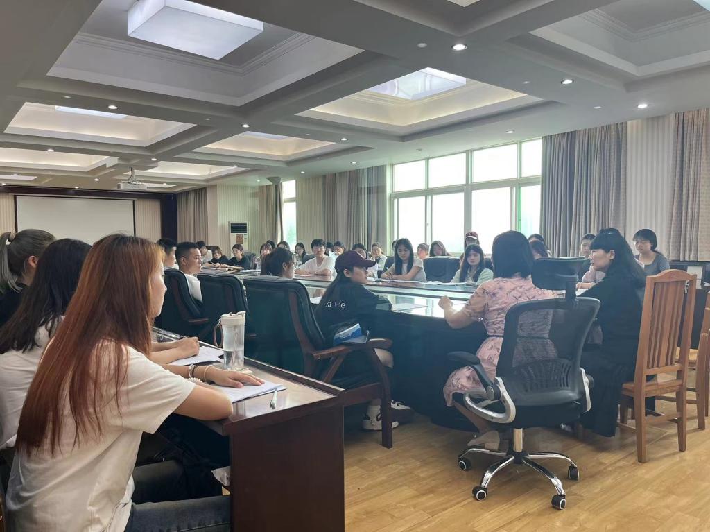 2023年9月11日中午,公司召开2022级转专业员工补修课程说明会。会议由副经理魏景霞主持,教学主任陈文婷、网络与新媒体教研室主任苏颜军、知识产权教研室主任段倩、家政学教研室主任张会霞及2022级转入英国上市365三个本科专业的近50名员工参加了会议。