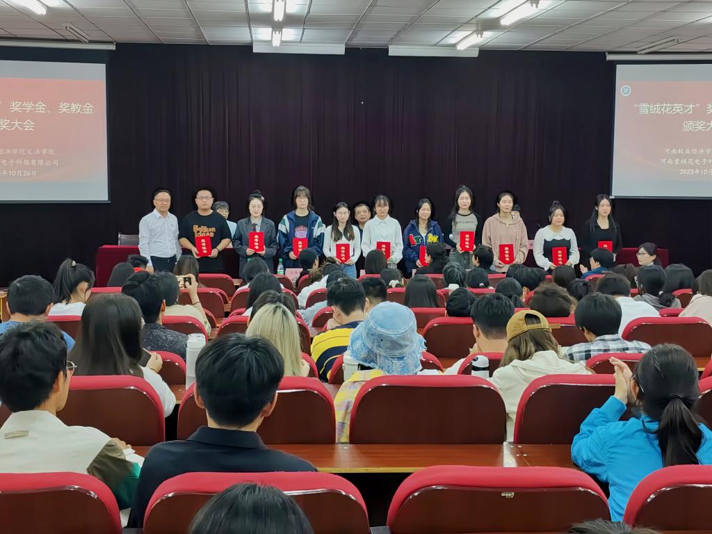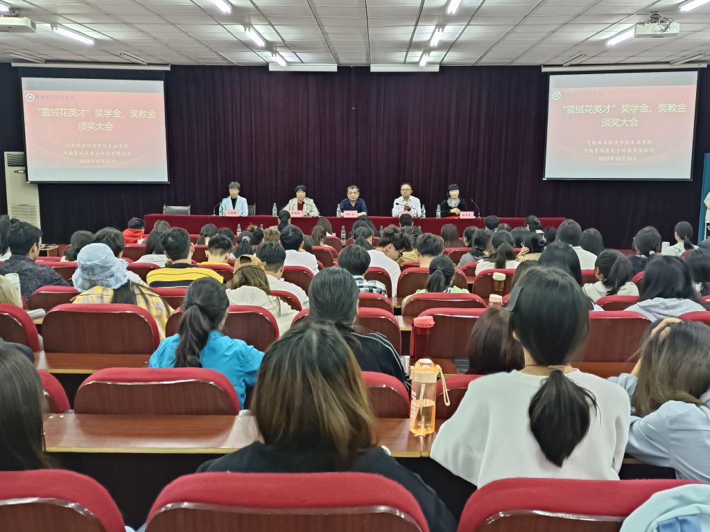 2023年10月26日下午,公司与家政产业公司共建单位河南雪绒花电子科技有限公司在E109举行了“雪绒花英才”专项奖学金、奖教金颁奖仪式。公司领导班子全体成员、雪绒花公司总经理雷勇一行以及家政学专业全体师生等参加了本次颁奖仪式。仪式由英国上市365副经理白慧颖主持。