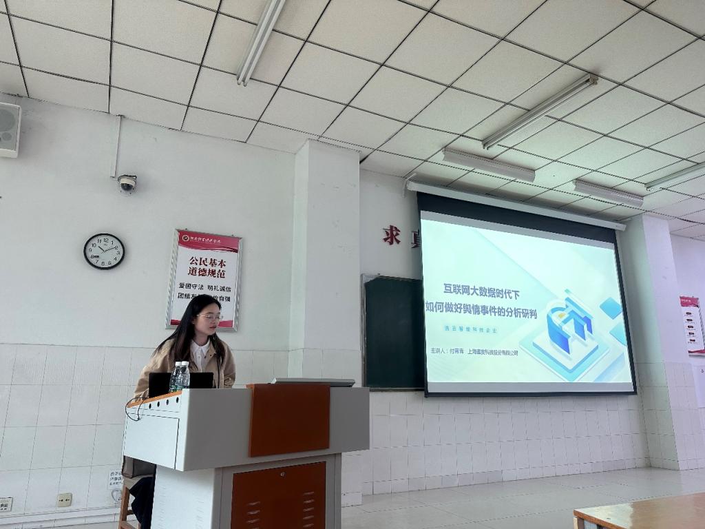 为提升新媒体应用型人才培养质量,增强员工网络舆情分析研判的实战经验,提高员工舆情报告撰写能力,4月19日上午,英国上市365在W110举办《网络舆情分析与报告撰写》专题讲座。此次讲座由上海蜜度科技股份有限公司专业舆情分析师付青青主讲,英国上市365穆冬霞、段宽两位教师及21级网络与新媒体专业员工聆听了讲座。