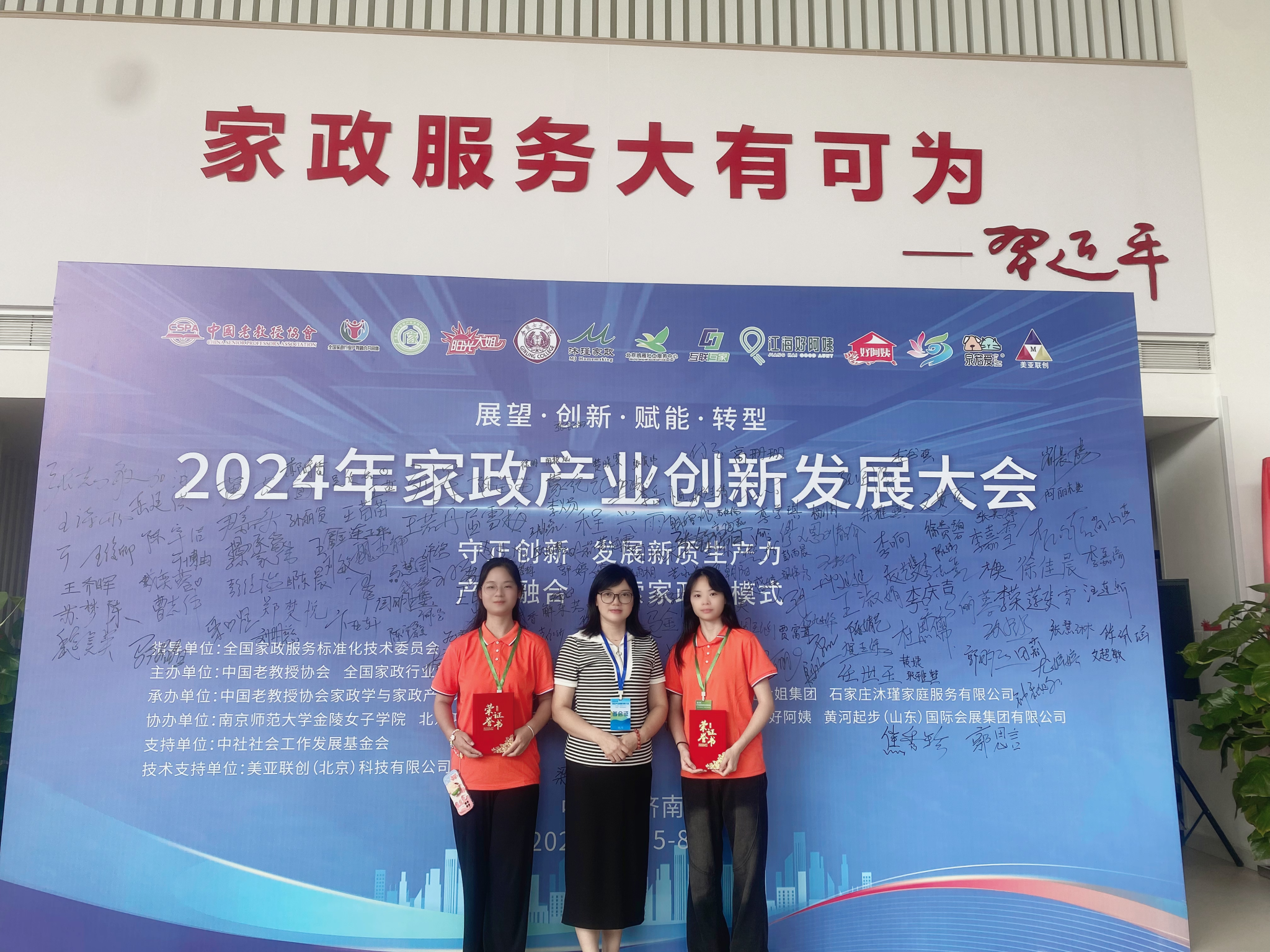 8月5日-7日,第九届全国商业服务业优秀店长大赛“未来之星家政店长”院校员工赛半决赛在济南全国家政服务标准化示范基地(阳光大姐)圆满落幕。此次半决赛设置了理论比赛、项目展示、现场答辩等环节,公司两名家政学子凭借扎实的理论素养、创新的项目设计、灵活的应变能力以及对未来家政市场前景的敏锐意识得到专家评委的认可。家政学专业2022级员工方梦菲获得二等奖,2023级员工秦薇钠获得优秀奖,张会霞老师被评为“优秀指导教师”,公司荣获大赛“优秀组织奖”。