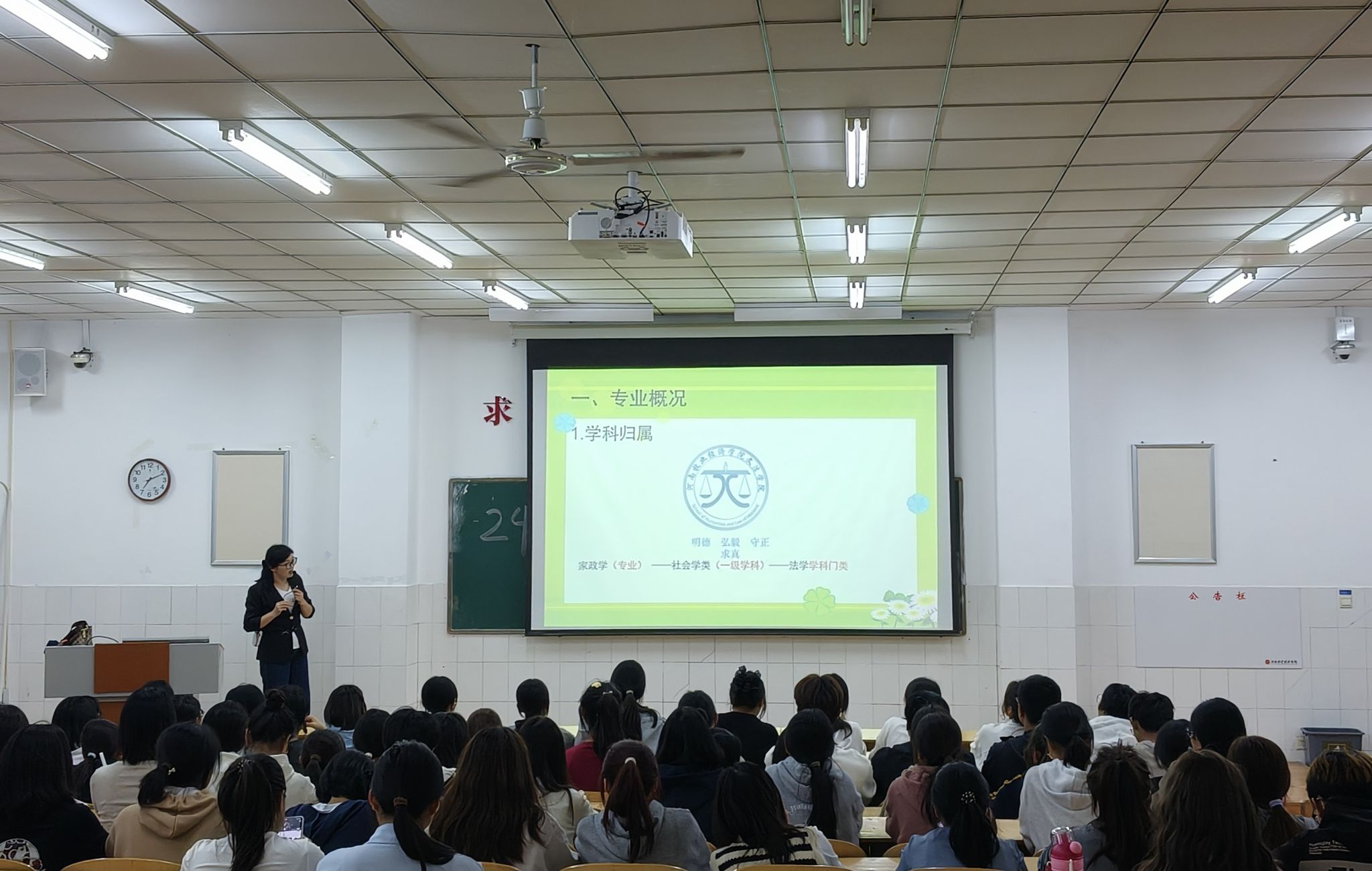在E209教室,家政学教研室主任张会霞老师首先介绍了家政学专业的学科归属和发展历程,分享了家政学专业近年来的建设成果、产教融合成效以及毕业生考研就业情况。然后,她结合实际分析了当前社会对于家政专业高素质应用型人才的迫切需求。接着,张老师根据新修订的2024版人才培养方案详细解读了公司家政学专业的人才培养目标及课程体系设置。最后,张老师勉励大家不忘初心、砥砺前行,在大学四年深研家政之学、生活之艺,磨砺专业技能、锤炼综合素质,为未来的职业生涯打下坚实的基础。