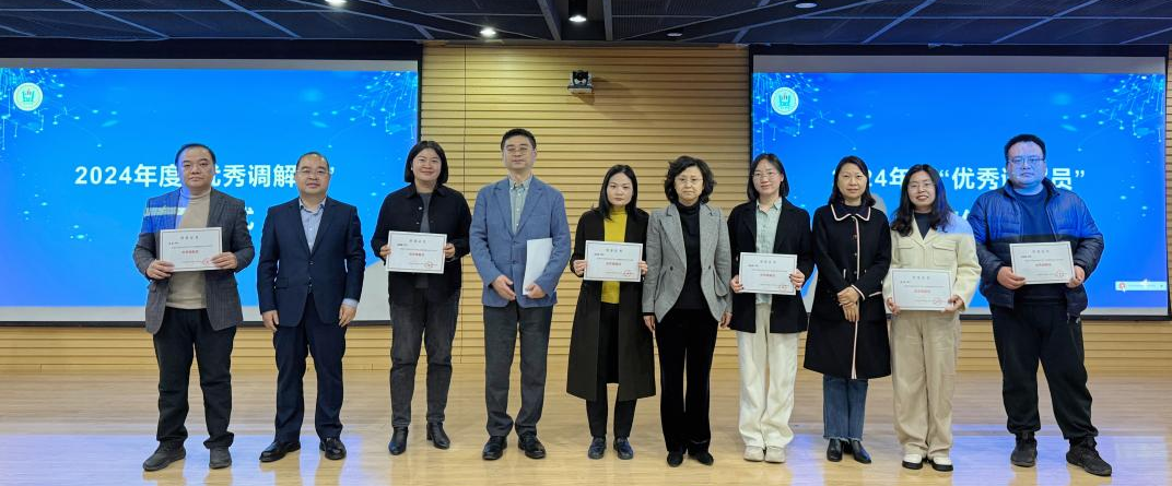河南省高级人民法院民三庭副庭长赵筝、管城回族区人民法院副经理常青、金水区司法局二级主任科员胡品晶、郑州市律师协会知识产权专业委员会主任陈奎等为段倩、郭媛媛等24位优秀调解员颁发了荣誉证书。