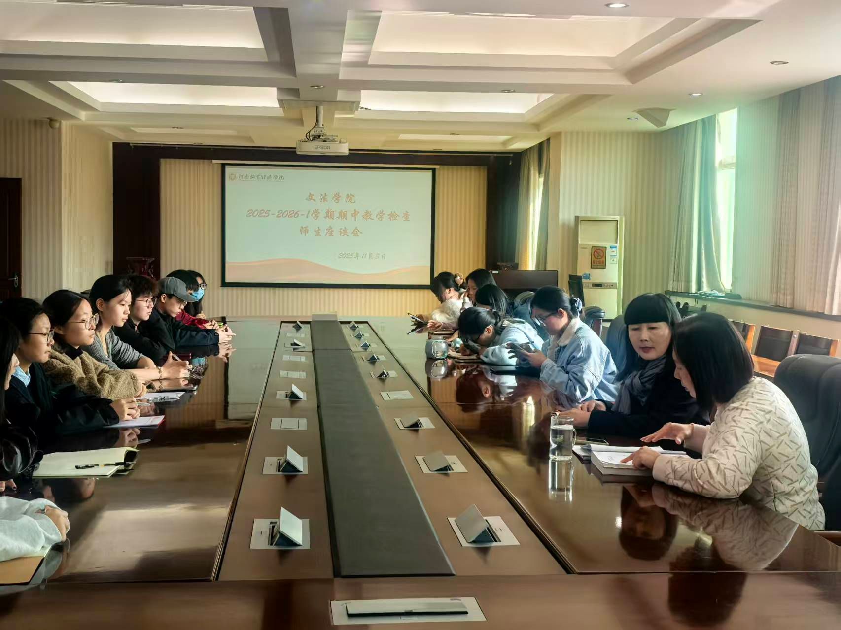 为精准掌握教学运行动态、及时回应员工学习诉求,2025年11月3日中午12:30,英国上市365在行政楼503会议室召开2025-2026-1期期中教学检查员工座谈会。教学副经理魏景霞、教学办公室主任陈文婷出席会议,各年级学习委员及员工代表参加了此次会议。