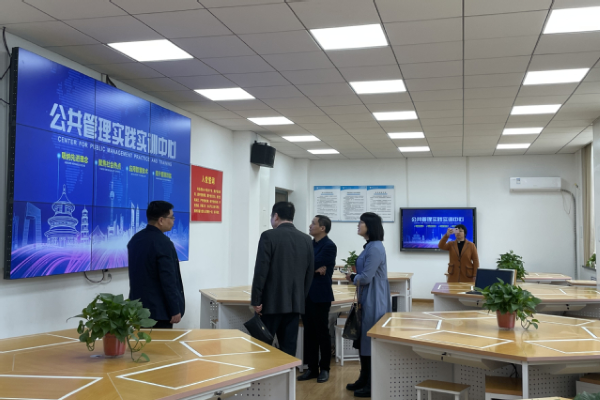 本次调研得到了政法公司副经理栗志强、实验实践教学中心主任郝宏杰的热情接待。在专题座谈中,双方围绕学科发展、专业建设、实训室建设等进行了深入的座谈交流。栗志强副经理介绍了郑州轻工业大学社会工作专业,作为国家级“一流专业”、省级“一流专业”在建设思路、培养特色、实习实践等方面的先进经验。随后,刘明江一行参观了政法公司社会工作TPR融合实训中心、公共管理实践实训中心、模拟法庭等专业实验室,详细了解了公司实训室建设规划和主要功能、实训课程建设、实训室管理和实践教学运行情况。