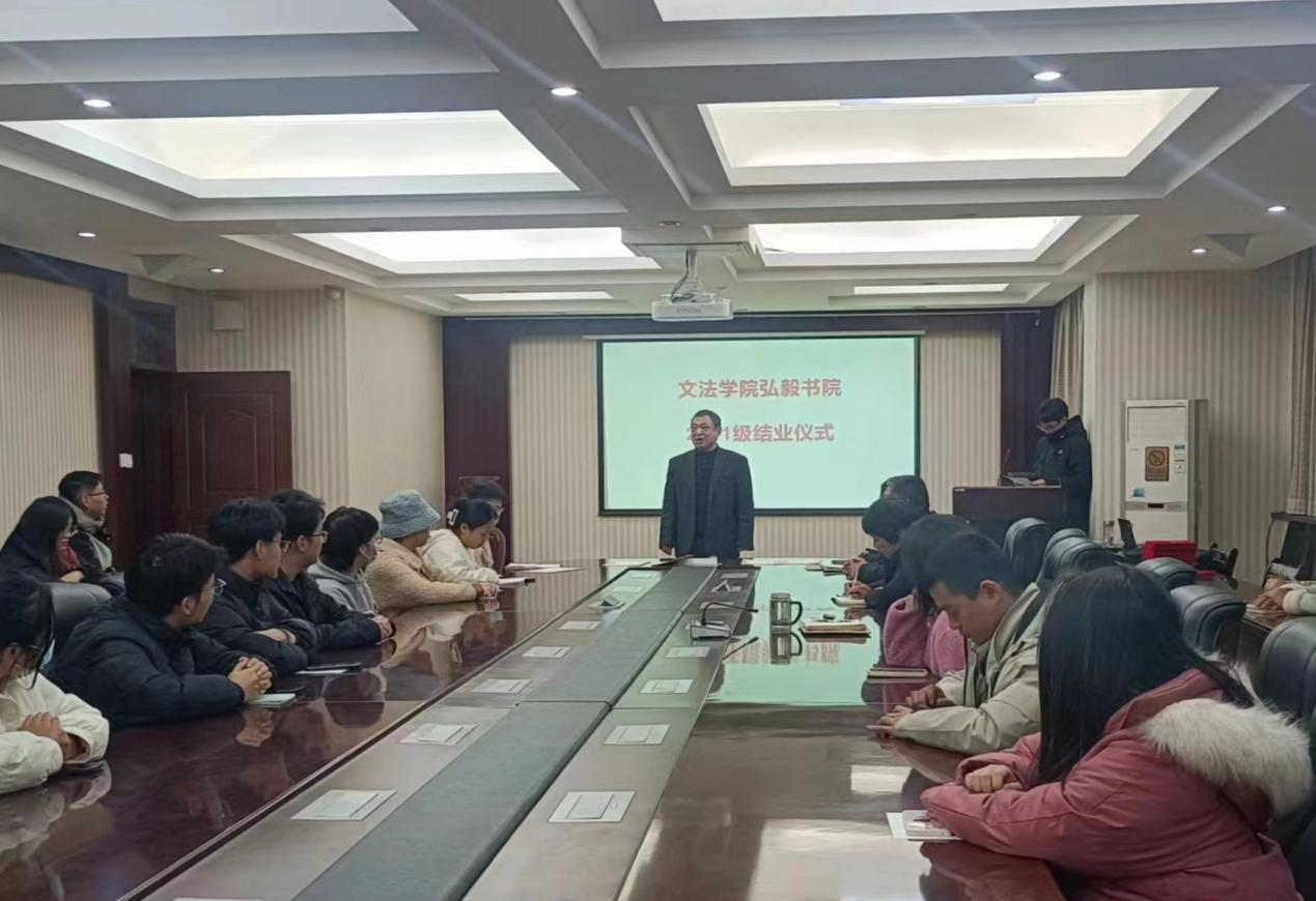 胡红林代表公司党委致辞。他向顺利结业的弘毅书院学员表示了衷心的祝贺,希望同学们要坚定理想信念,认真学习习近平新时代中国特色社会主义思想,从习近平文化思想中汲取营养,进一步坚定文化自信;他要求各位学员能够将从弘毅书院所学的传统文化知识和红色文化教育融会贯通,做到内化于心,外化于行,将弘毅书院的优良传统发扬光大,做一名合格的文法“弘毅人”。