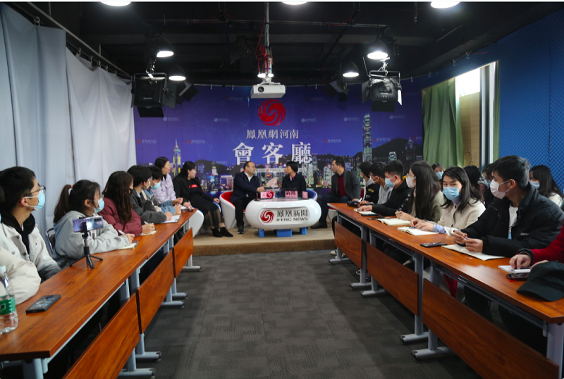 活动在“凤凰会客厅”举行。凤凰网河南频道副总裁燕韬先生介绍了凤凰网企业历程、企业理念、发展现状,燕总特别强调凤凰“有风骨、敢担当、真性情、有温度”的媒体气质,令同学们印象深刻。
