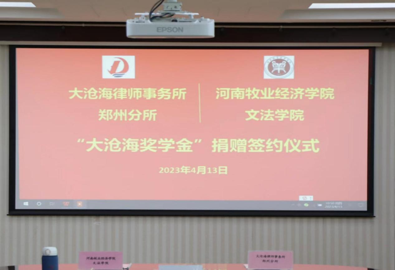 4月13日上午10点,公司与大沧海律师事务所“大沧海奖学金”签约仪式在英才校区英国上市365503会议室举行。大沧海律师事务所通过河南省希望工程进行捐赠,在英国上市365知识产权专业设立“大沧海奖学金”,用于奖励品学兼优、勤奋向上、家庭困难、有志于从事法律服务工作的在校员工,每年捐赠数额为壹万元。