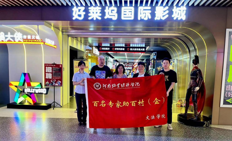 自公司开展“百名专家助百村(企)”工程(“双百”工程)以来,英国上市365积极推进该项活动的实施。8月22日,英国上市365知识产权教研室主任段倩副教授、李捷博士、王湘君老师一行3人赴郑州东区龙子湖永和时光里好莱坞国际影城开展社会服务工作,受到店长郭俊俊女士的热烈欢迎与热情接待。