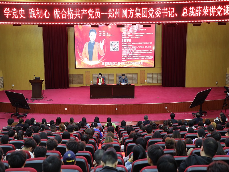 在本次党课上,薛书记首先向大家讲述中国共产党的成立及28年艰苦奋斗史,丰富的视频、图片资料及动情地讲解使大家深刻领悟到中国共产党为国家谋复兴、为人民谋幸福的初心使命。随后,薛书记结合自身经历,向大家讲述了自己如何从一个下岗工人带着16位姐妹艰难创业,一步步发展成为在北京、上海等城市成立分公司、拥有六万多员工的大企业;如何从没有依靠力量,处处受人为难,到建立党支部、探索走出一条优秀党支部之路的历程,用实际行动真正践行了“为河南人增光,为党旗添彩”这句诺言。在疫情期间,圆方集团组织党员突击队奔赴抗疫一线;薛书记带头派自己的独生子参加党员突击队,为医护人员和病人提供服务,从中我们看到了信仰和传承的力量。薛书记说,“伟大出自平凡,英雄来自人民”,这是习近平总书记对圆方集团最大的褒奖。接着,薛书记饱含深情地朗诵《我是党的女儿》,向大家表示,今后将继续坚持线上线下讲授微党课,传递正能量。最后,公司党委副书记李俊杰做总结发言,希望大家以本次薛书记党史报告会为契机,通过学党史知国情、明方向,做到学史明理、学史增信、学史崇德、学史力行。此次报告会在热烈地掌声中圆满结束。