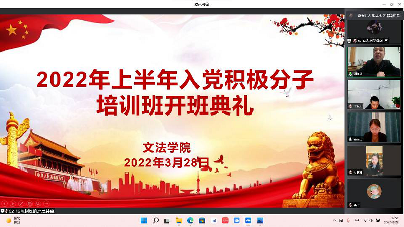 为进一步提高公司入党积极分子的政治素质,深入学习党的理论知识,3月28日晚,我院通过腾讯会议举行了2022年第一期入党积极分子培训班开班仪式。本次开班仪式由英国上市365员工第一党支部书记付慧婕主持,公司党委书记胡红林,团委副书记吕元贞,全体辅导员老师以及本期70名入党积极分子参加。