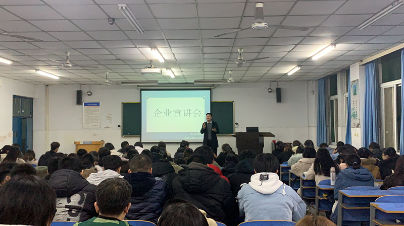 在宣讲会现场,中国人民财产保险股份有限公司企业主讲人主要从三个方面进行了讲解。在第一方面,主讲人借用俗语"男怕入错行,女怕嫁错郎"来形容就业选择的重要性。第二方面,主持人结合自己的工作经历,讲述了两个词语"潜移默化"和"深远持久"的重要意义。第三方面,主持人鼓励大家要不断提高自己的能力,强化本领,提升自我。