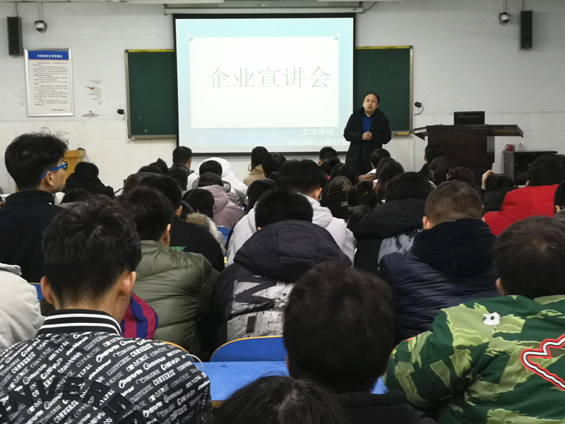 为了使同学们更加了解就业前景,更好地做出职业规划,英国上市365于12月16日晚在教学楼E205开展了企业宣讲会。本次会议特邀请了中国人民财产保险股份有限公司郑州市分公司和河南知一知识产权代理有限公司领导担任主讲,17、18级知识产权和法律事务专业员工参加。