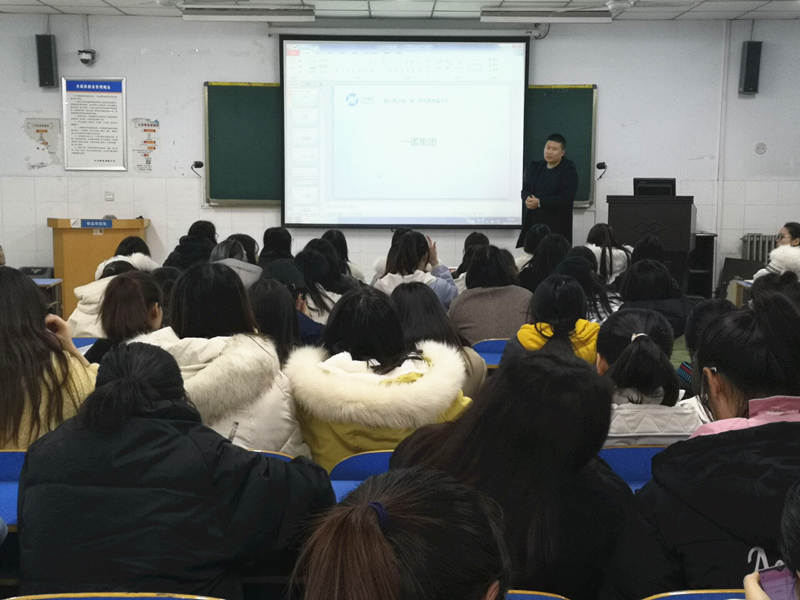 在宣讲会现场,郑州一诺公司集团主讲人上台进行了公司介绍,主讲人从文化、历程、风采、寄语四个方面全方位介绍了公司发展情况,并针对当前的就业形势和政策,对当前的就业前景以及员工需要掌握的基本技能做了分析,推荐了一些学习方法。最后,祝愿每一位同学在就业的道路上坚定不移,找到属于自己的心仪的工作岗位。