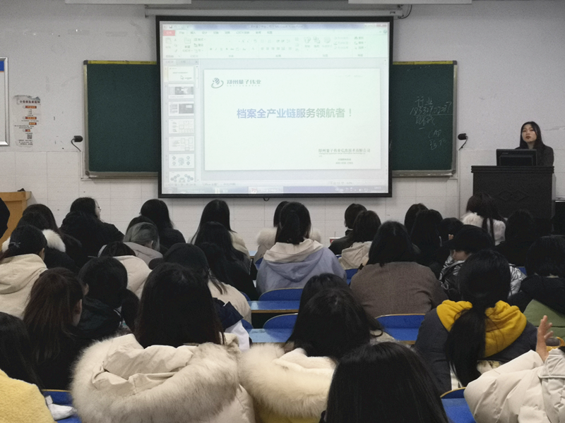 随后是来自郑州量子伟业科技有限公司进行宣讲。主讲人先从公司的历史讲起,详细向大家介绍了企业基本情况并从宗旨、使命、精神、理念以及未来愿景方面阐明了自己的企业文化,紧接着讲述了企业的成功案例。最后,同学们就就业细节情况进行提问,主讲人给予一一耐心解答。至此,本次宣讲活动在同学们的掌声中圆满结束。