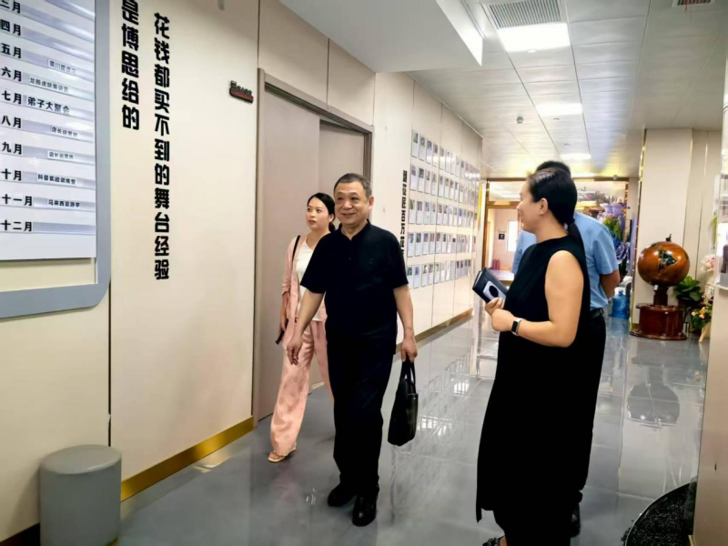 在李总的陪同下,胡书记一行深入光明传媒(河南)集团有限公司,实地参观了企业内容创作中心、新媒体运营中心、培训中心等部门,参观过程中,李总详细介绍了公司在新媒体内容生产、短视频及微短剧拍摄,红色文化宣讲、品牌赋能等领域的发展成果,以及当前行业对复合型新媒体人才的技能需求与岗位标准。胡书记一行认真听取介绍,并结合网络与新媒体专业的课程设置、实践教学体系,与李总就内容创作理念、技术应用趋势等进行了实时互动。
